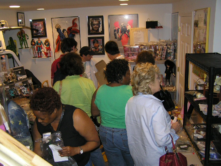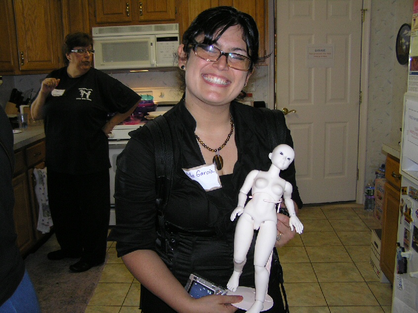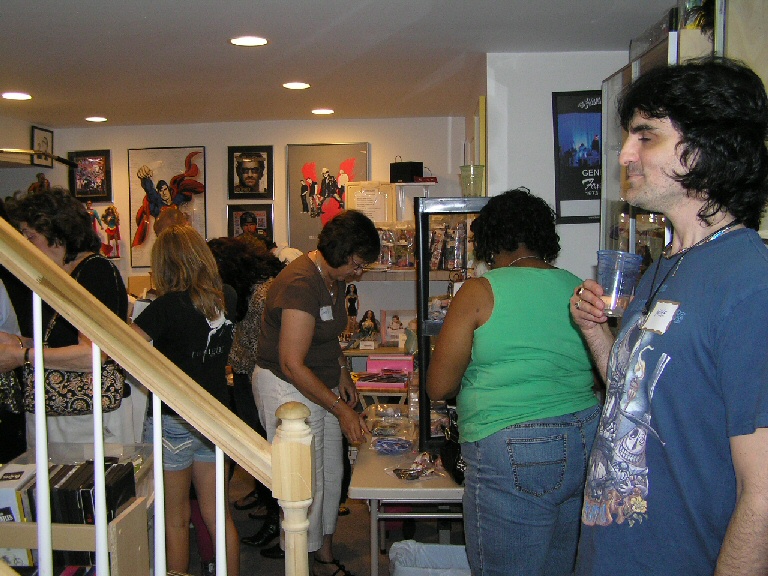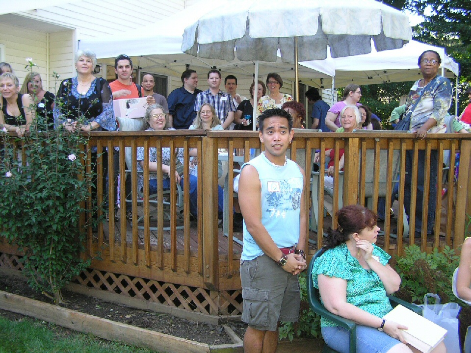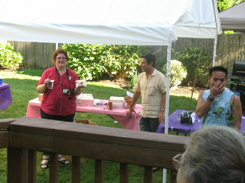 Marcia giving away "booby prizes" (and door prizes) with Michael and Q