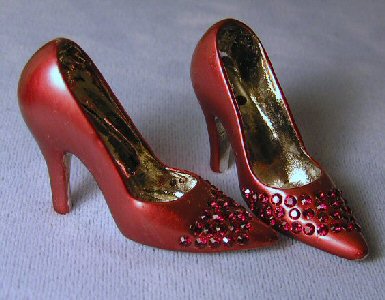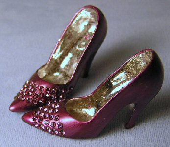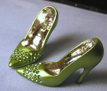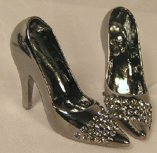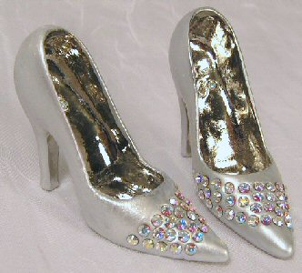 These shoes are made with sparkling Swarovski crystal rhinestones and professional jewelry finishing. The colored shoes are coated with paint and a protective sealer. The shoes are entirely metal and quite substantial in feel and weight. They will not break. However, all shoes should be handled with care to prevent scratching.