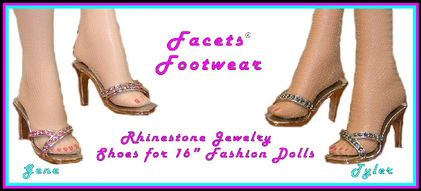 These shoes are made with sparkling Swarovski crystal rhinestones and professional jewelry finishing. They are entirely metal and are molded to fit many 16" fashion dolls like Tyler, Gene and Alex. These will not fit Franklin Mint fashion dolls.