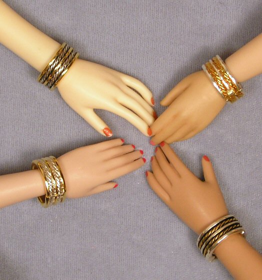 These bracelets fit almost all 16" fashion dolls, including all Tyler bodies (SA, BA, or BW), Sybarites, Gene (AD or Deluxe), Clea Bella, Alex, Franklin Mint, Kinetic Dolls, etc.