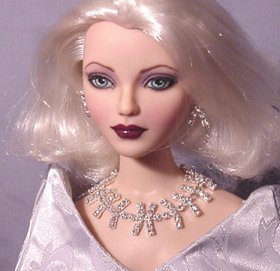 Elizabeth $25 Available in black, light amethyst, light sapphire and aurora borealis. The long Y-necklace is great for all sizes of dolls. Both dolls are shown wearing my new triple strand elastic rhinestone bracelets - available in clear (gold or silver), clear/red, clear/green and clear/black. |