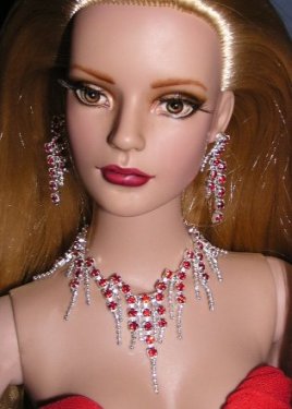 Frostfire Fabulous dangling necklace with rhinestones and tiny faceted ball chains for extra glitter! Many colors can also be made for BJD's/Tonner American Models/Cissy