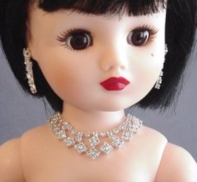 Noblesse Tiny rhinestones form squares which come to a point in this elegant necklace. Earrings my vary. $25 for necklace/earring set.