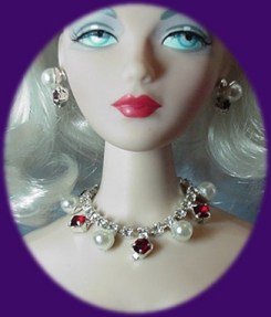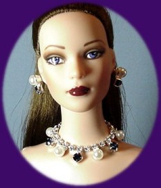 $15 for necklace Note: Earrings can be made with standard posts or thicker posts to fit the large pre-cut holes made by Mattel. Also, necklace can be made with hook closure or solid, which would require removing doll's head to put it on. |