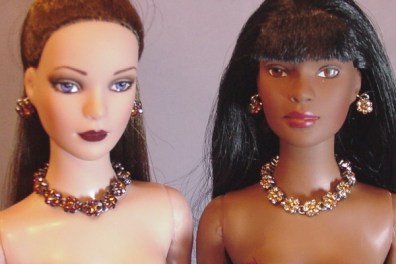 $18 for necklace Note: Earrings can be made with standard posts or thicker posts to fit the large pre-cut holes made by Mattel. |