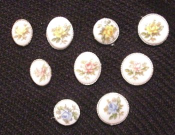 P19 - Porcelain Floral Beautiful painted porcelain pins! Choice of yellow, blue, or pink roses, with either a silver backing or no backings. Small ovals are also available with gold backing. Yellow roses: small oval, large oval, small circle, large circle Pink roses: small oval, large oval, large circle Blue roses: small circle, large circle