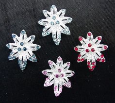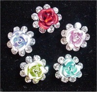 P33 - Rose and Diamonds Lovely metallic rose set in the center of a circle of rhinestones. Available in lilac, aqua, olive, purple or periwinkle (not all colors shown).