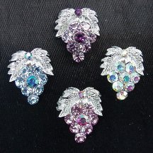 P22 - Grapes A cluster of grapes with silvertone leaves. Available in pink, light blue, black diamond, green or clear (not all colors shown).