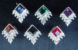 P26 - Single Square A square stone is set on two sides by tiny rhinestones. Available in amethyst, clear or AB. Other colors shown are sold out.