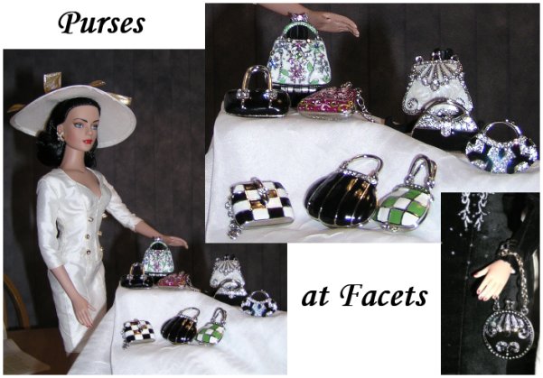 These purses are sized for 16" dolls like Gene, Tyler, Alex, Clea Bella, etc. To see purses for smaller dolls, click here. Some of the smaller purses work great as small evening bags for the 16" dolls!