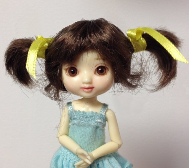 | MIWA Synthetic Mohair Custom Manufacturer Pigtails and bangs. Ribbons can be easily changed. Available in: