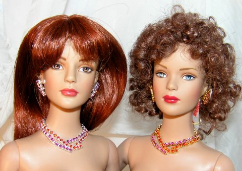 Size 5-6 $16 Brown Black modeled by Tonner's Ashleigh and Light Peach Blonde modeled by Skye Sybarite, both wearing Facets Multi-Chain necklace. |