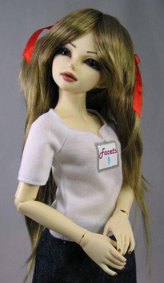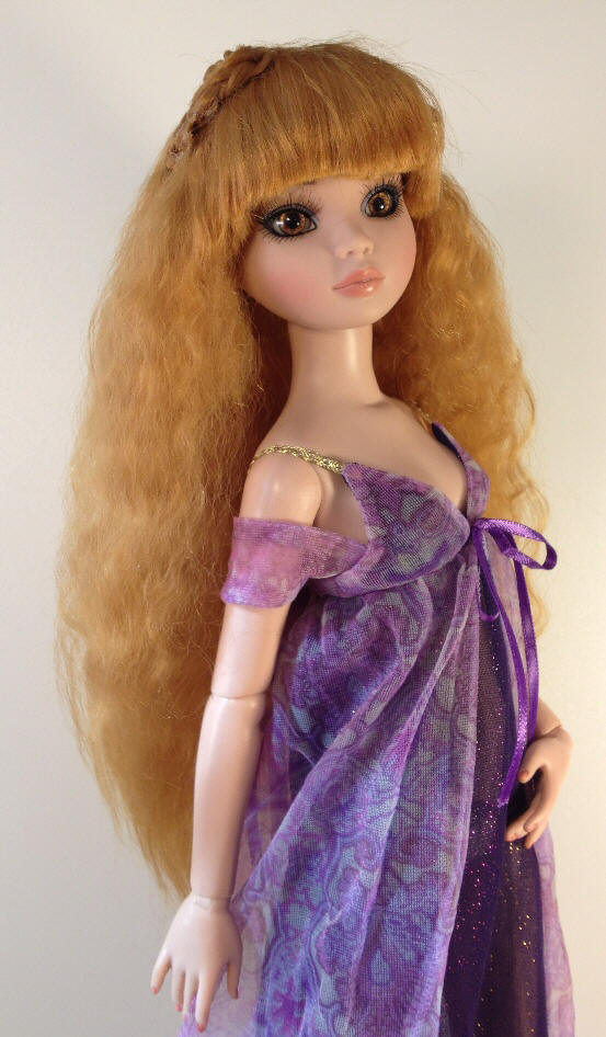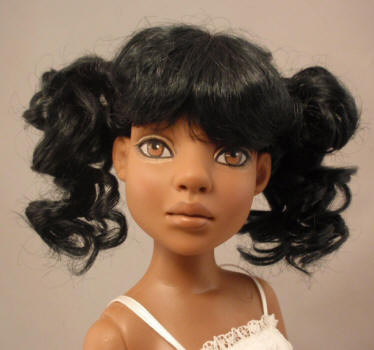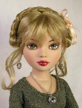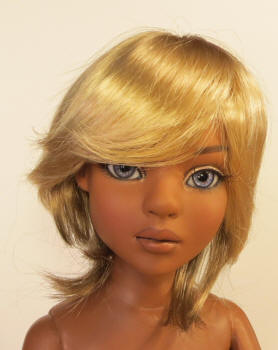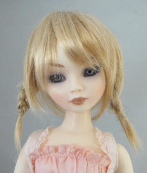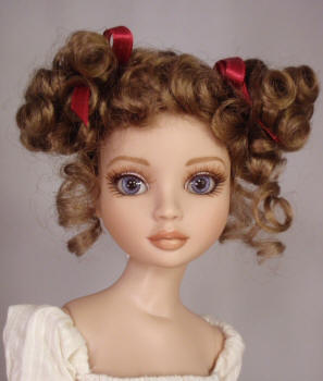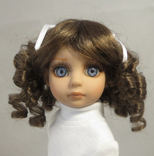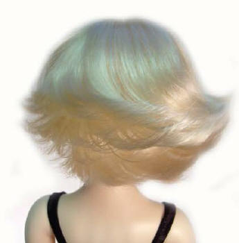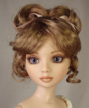 Size 6-7 $19 Chestnut Brown modeled by Gene (size 5/6). Light Peach Blond (with curls loosened with fingers) on Ellowyne. *Facets does not keep this style in stock, but can order it from Monique. Orders must be pre-paid and will take 7-10 days. Some colors may be available on the Clearance page at a discounted price. |