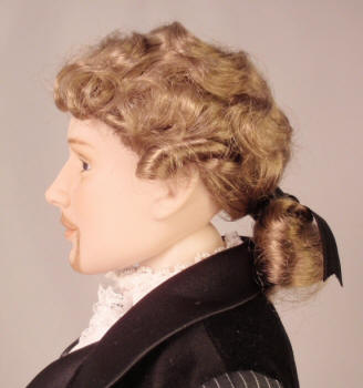 | NICOLETTE Synthetic Mohair Hair pulled back in bun and French curls in the back - a few tendrils in front Available in: