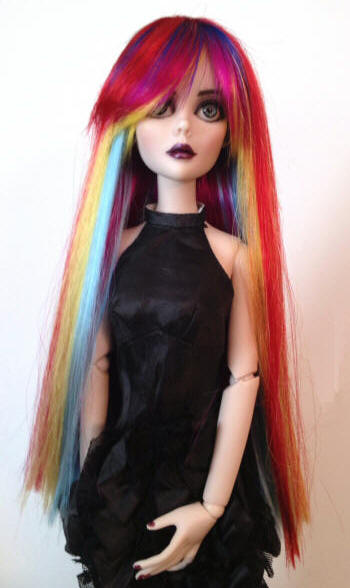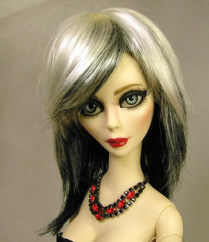 Blonde (sold out) modeled by Evangeline Ghastly. Please note: This wig does NOT fit Amber (Ellowyne's rival). |