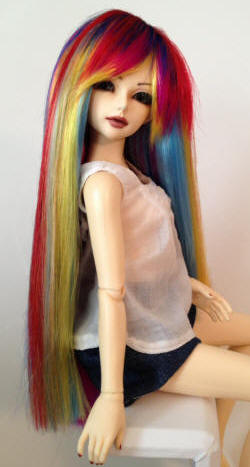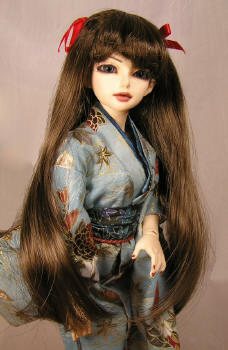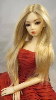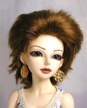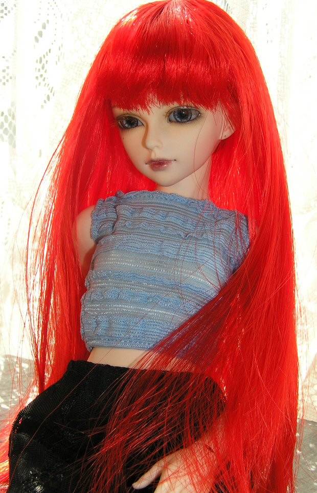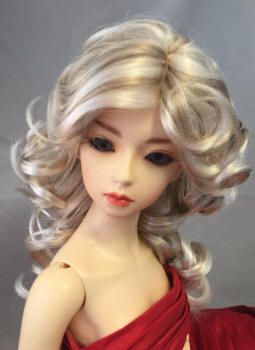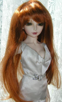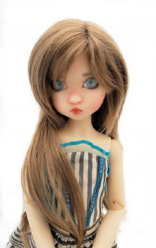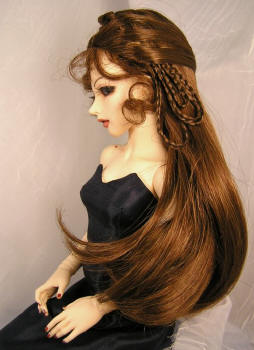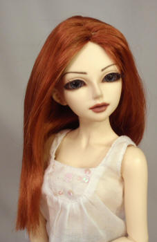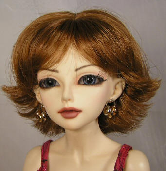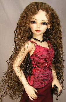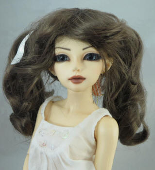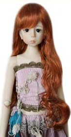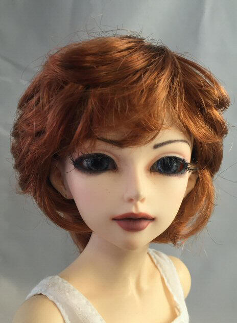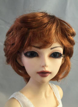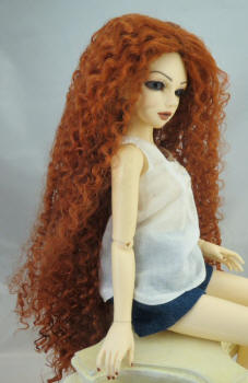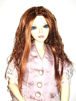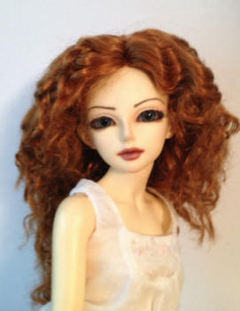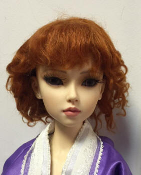 Size 7 1/4 $24 PLEASE NOTE SIZE - this is a little smaller than a 7/8 wig, but will fit most dolls that wear a 7/8 unless that size is normally tight. Double Red modeled by Mini-Fe Lishe. Ginger Brown modeled by Ellowyne Wilde. |