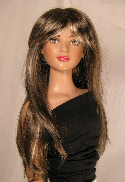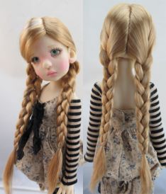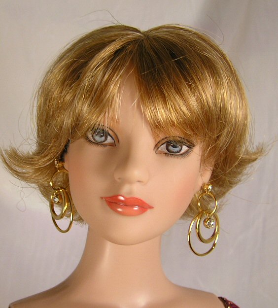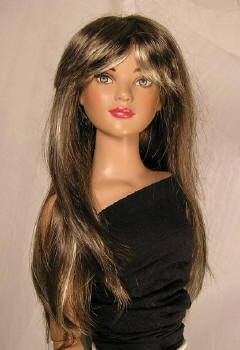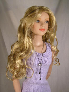 Size 7 1/4 $24 PLEASE NOTE SIZE - this is a little smaller than a 7/8 wig, but will fit most dolls that wear a 7/8 unless that size is normally tight. Ginger Brown modeled by Ellowyne Wilde. Light Golden Blond modeled by 22" Tonner American Model |