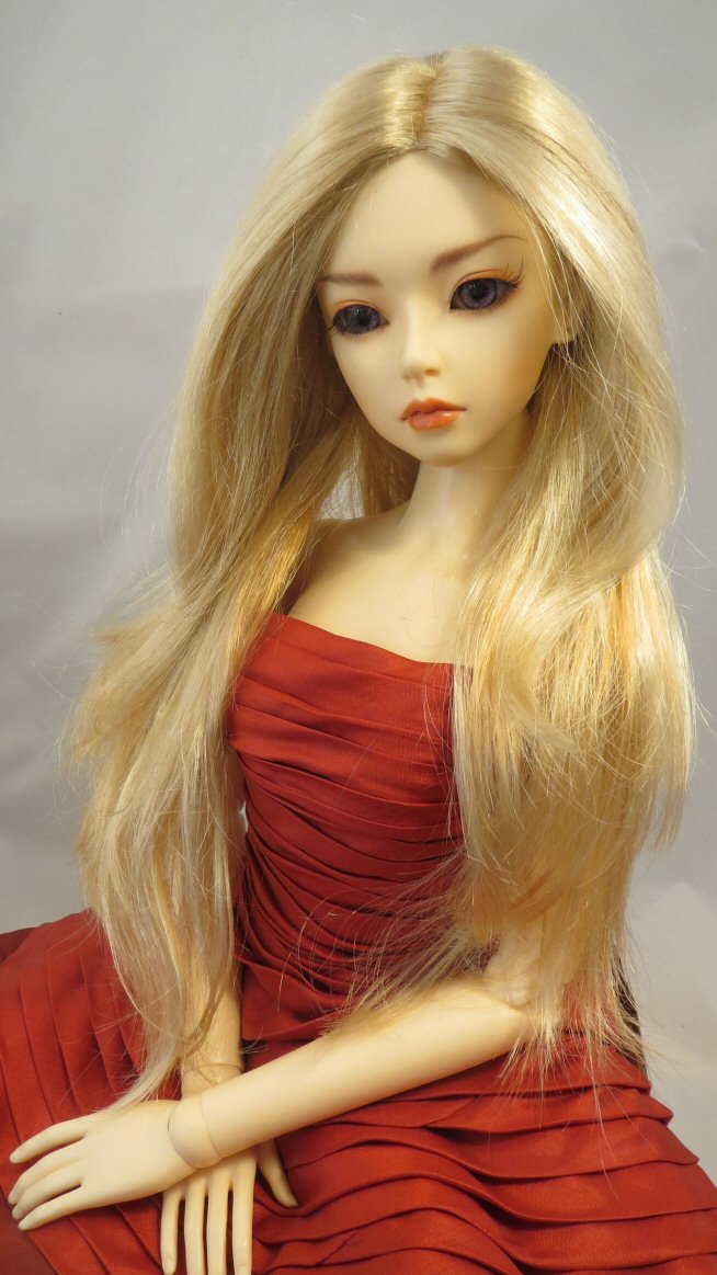 Size 7 1/4 $22 PLEASE NOTE SIZE - this is a little smaller than a 7/8 wig, but will fit most dolls that wear a 7/8 unless that size is normally tight. Double Red modeled on Ellowyne Wilde |