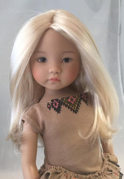 Peach/Ginger Brown modeled by 22" Tonner American Model |