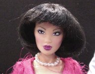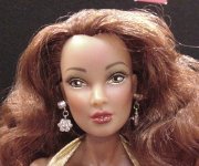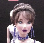 In keeping with the butterfly theme, all of the dolls have butterflies in various parts of their attire - jewelry charms, hair ornaments, beading design, etc. Tasha even has a butterfly tattoo on her derriere. All of the dolls have panties with an embroidered butterfly and there is a butterfly inside the lining of the gowns. The stand in a translucent pink sparkle butterfly shape with loose "gems" inside the base. The dolls come with a necklace for the collector - a flexible wire necklace with a butterfly charm. The packaging is simple and fairly compact - a narrow aqua shoebox style box with a butterfly cut-out where you can see the doll's face.