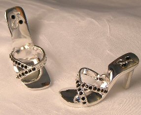 These shoes are made with sparkling Swarovski crystal rhinestones and professional jewelry finishing. They are entirely metal and are molded to fit many 16" fashion dolls like Tyler, Gene and Alex. These will not fit Franklin Mint fashion dolls.