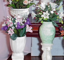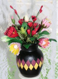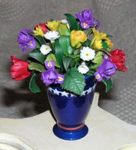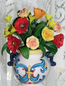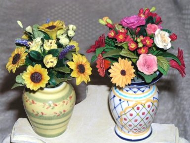 Each of these arrangements is handmade from clay and hand-painted. No two bouquets are exactly alike. Each flower and leaf is uniquely designed to create beautiful bouquets that last a lifetime!