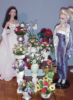 These are perfectly scaled for 16" - 18" fashion dolls. Each arrangement is 3" - 5" tall.