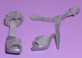 - Version 2: gray felt ankle strap shoes with gray ribbon ties threaded through ankle strap