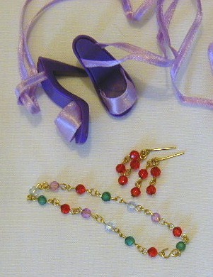 - necklace of multicolored (red, green, pink, light blue) faceted