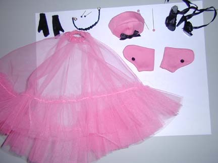 - carnation pink "floating" detached sleeves trimmed with tiny black button