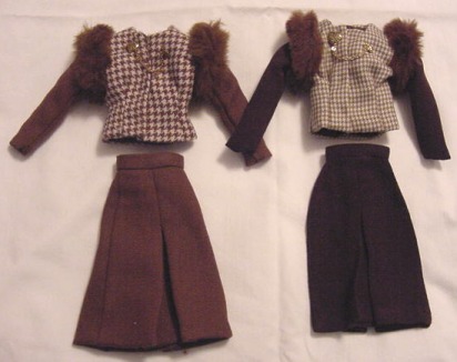 - Houndstooth jacket with brown crepe sleeves, brown faux fur at shoulders and