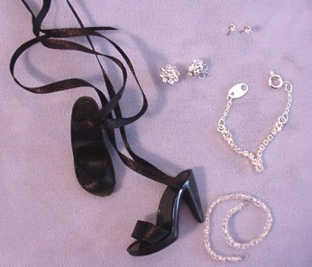 - Lemon blonde haired doll, with shoulder length hair. (Note: in the publicity photos, the doll has much darker hair)