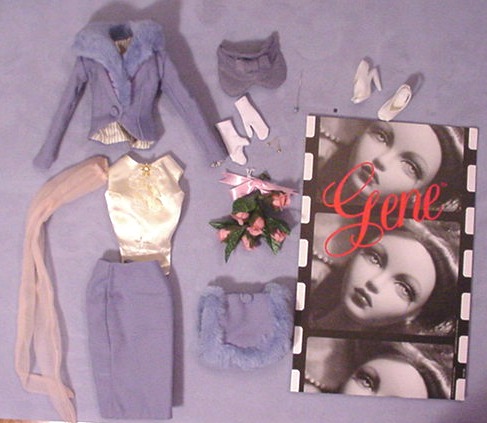 - wedgewood blue wool suit jacket, with blue "fur" trim at collar
