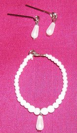 - pearl drop earrings and necklace with drop in front