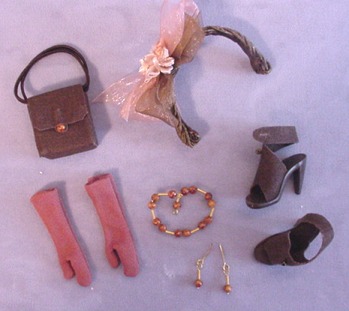 brown stripes around waist. Ribbon corsage attached.