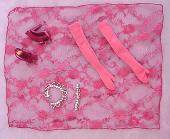 - cranberry and dark pink multi-layered tulle underskirt with rhinestones,