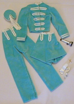 - Aqua blue velvet pants with white satin ribbon trim