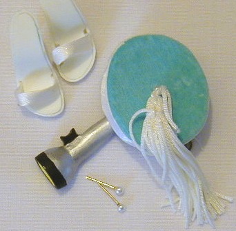 - Aqua blue velvet pillbox hat with white satin trim and white tassel