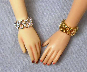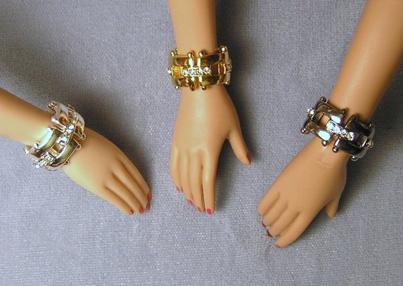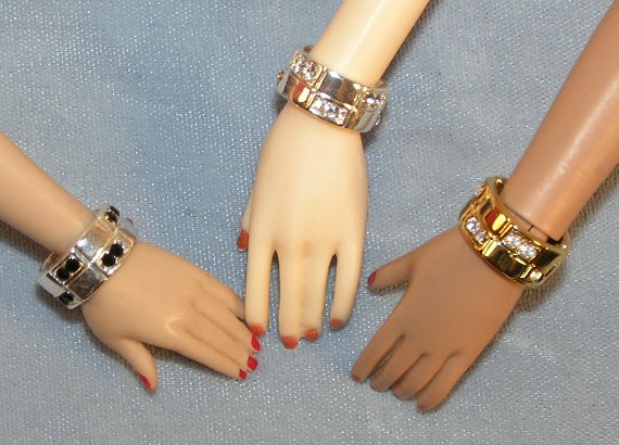 These bracelets fit almost all 16" fashion dolls, including all Tyler bodies (SA, BA, or BW), Sybarites, Gene (AD or Deluxe), Clea Bella, Alex, Franklin Mint, Kinetic Dolls, etc.