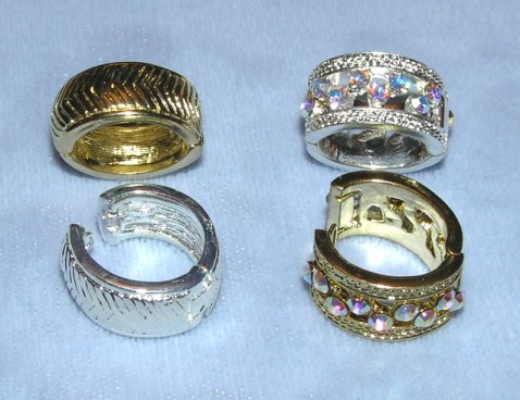 Band: gold or silver with aurora borealis stones or gold/clear stones (silver/clear is sold out) Shown from left to right: Kinetic, Sybarite, Gene, BW Tyler ![]() |