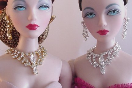 $20 for necklace Note: Earrings can be made with standard posts or thicker posts to fit the large pre-cut holes made by Mattel. Also, necklace can be made with hook closure or solid, which would require removing doll's head to put it on.