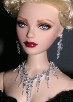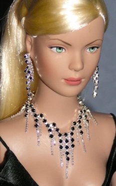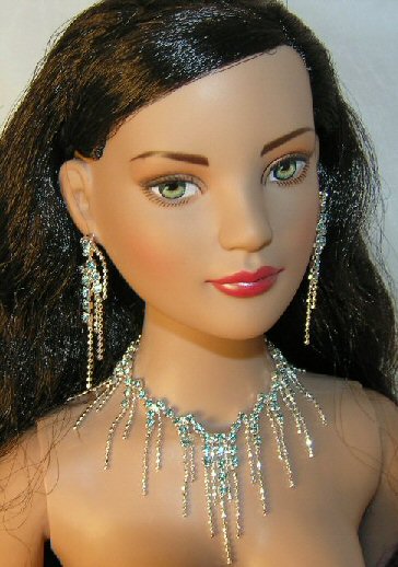 Frostfire Fabulous dangling necklace with rhinestones and tiny faceted ball chains for extra glitter! Many colors can also be made for BJD's/Tonner American Models/Cissy