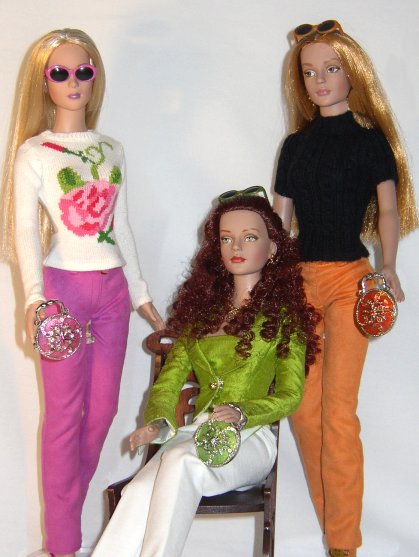 These purses are sized for 16" dolls like Gene, Tyler, Alex, Clea Bella, etc. To see purses for smaller dolls, click here. Some of the smaller purses work great as small evening bags for the 16" dolls!