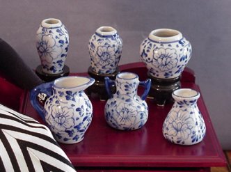 Japanese Porcelain $4 each ~ 1 1/2" tall Black Porcelain Base Stand Back row (left to right): Front row (left to right): Can't decide? Feel free to ask me to pick one for you. |