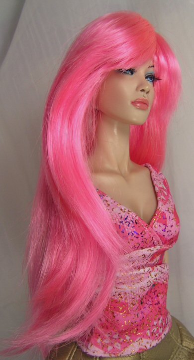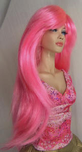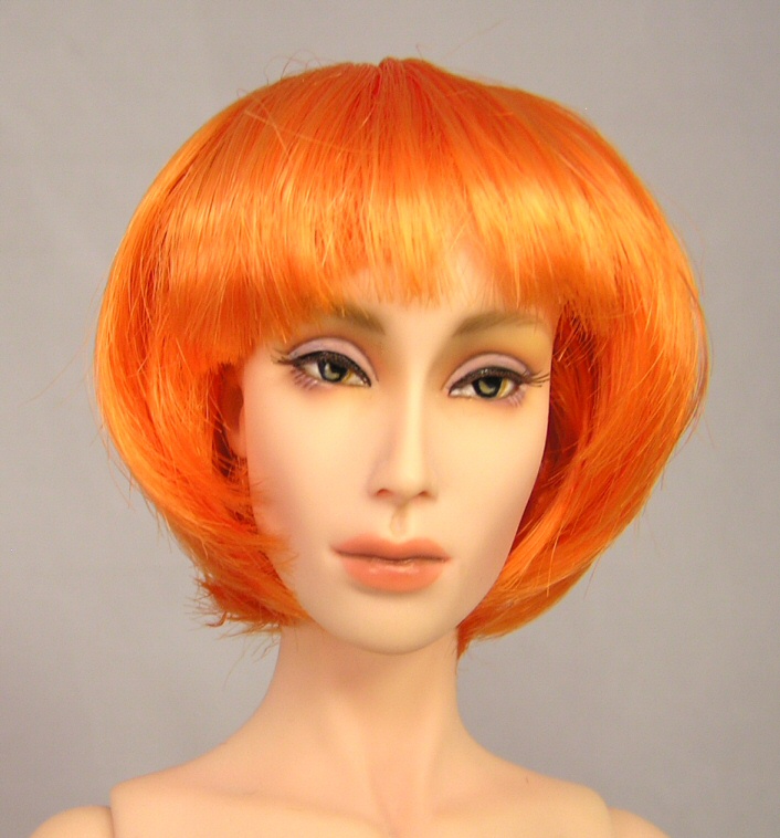 Size 5-6 $16 Orange modeled by Slipper Sybarite (because of her flocked head, Slipper needs a 5/6 wig) |