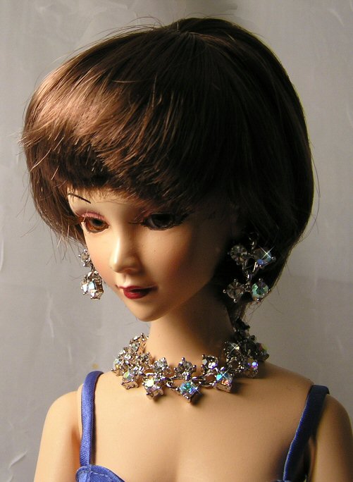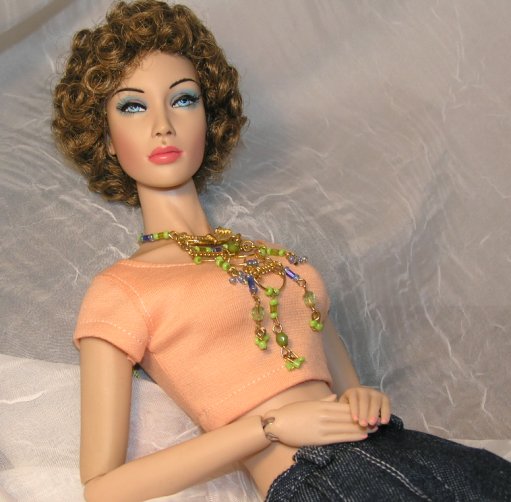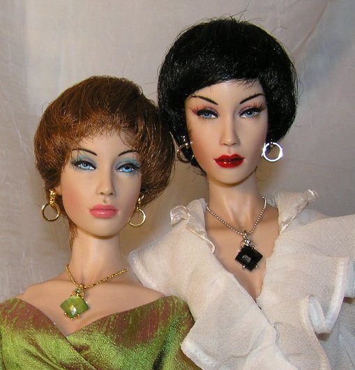 Size 5-6 $16 Brown Black modeled by Tonner's Ashleigh and Light Peach Blonde modeled by Skye Sybarite, both wearing Facets Multi-Chain necklace. |