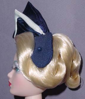 - Blue headband hat with blue and white satin ribbons which stand up on head