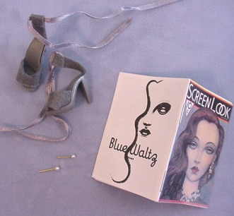 - Version 2: gray felt ankle strap shoes with gray ribbon ties threaded through ankle strap