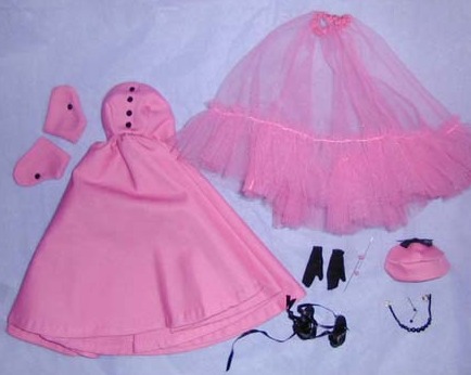- carnation pink "floating" detached sleeves trimmed with tiny black button