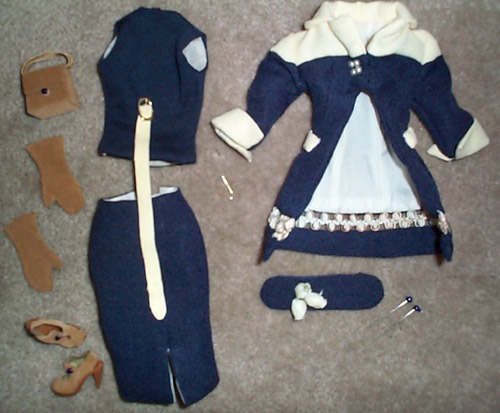 - navy pebble crepe skirt, front slit. fully lined in cream rayon,